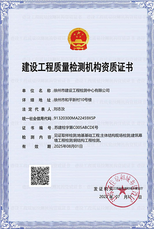 徐州市建設(shè)工程檢測中心有限公司(以下簡稱徐建檢測公司)是徐州市產(chǎn)城發(fā)展集團(tuán)有限公司(以下簡稱產(chǎn)城集團(tuán))的全資子公司。徐建檢測公司前身為徐州市建設(shè)工程檢測中心,2018年事轉(zhuǎn)企改制,2020年4月,完成轉(zhuǎn)企改制資產(chǎn)劃轉(zhuǎn)工作。 徐建檢測公司是集檢測、檢驗、鑒定、咨詢等技術(shù)服務(wù)為一體、具有獨(dú)立法人資質(zhì)的綜合性第三方服務(wù)機(jī)構(gòu)。公司主要從事建設(shè)工程領(lǐng)域相關(guān)工程質(zhì)量檢測及技術(shù)咨詢服務(wù),業(yè)務(wù)覆蓋地基基礎(chǔ)、建筑材料、建筑結(jié)構(gòu)、鋼結(jié)構(gòu)工程、市政工程、綠色建筑節(jié)能工程、建筑安全與施工設(shè)備、建筑防水、建筑水電、裝飾裝修、建筑物防雷、室內(nèi)環(huán)境、房屋安全鑒定、城市軌道交通工程等專業(yè)領(lǐng)域。......